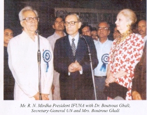Galaxy of Luminaries had adorned the office of President of IFUNA like Late Smt. Vijaya Laxmi Pandit Former President of General Assembly U.N.O., Late Mrs. Savitri Nigam, Member of Parliament, Late Mrs. Rajan Nehru, Member of Parliament Late Sh. Ram Krishan Hegde, Member of Parliament and Late Shri Ram Niwas Mirdha, Member of Parliament. IFUNA has a network of affiliated State United Nations Associations in various states of the country such as Andhra Pradesh, Assam, Bihar, Chandigarh, Chhattisgarh, Gujarat. Haryana, Himachal Pradesh, Kerala, Karnataka, Madhya Pradesh, Maharashtra, Manipur, Meghalaya, Orissa, Rajasthan, Tamil Nadu, Uttar Pradesh and West Bengal.